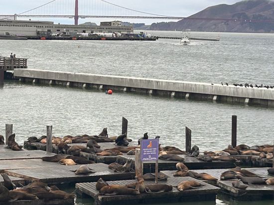 港町サンフランシスコで欠かせない観光スポットといえばここ、フィッシャーマンズワーフ!建物がウッドのデッキでつながったピア39はアシカが群れで日向ぼっこしている姿が見られます。