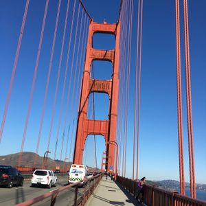 ゴールデンゲットブリッジのビューポイントに降り立ち橋を渡るバスを待ってましたが一向に来ず、青い路線の運転手さんに聞くとあと5分など言っていましたがだいぶ待ちました。やっときたバスは、小型のバスでした。2階建てじゃなくて、ガッカリでした…。それが目的でねばってたので。だったら、自転車だったり、歩きだったりで早々に行けば良かったです。結果、バスで渡って、帰りは歩きましたがそんなに時間はかからず気持ち良かったです!歩くのもオススメです!