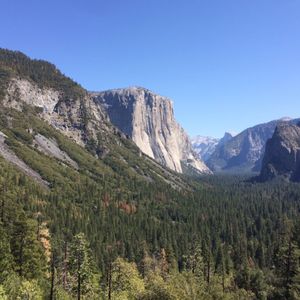 現地に着き、まずはセコイア国立公園、そしてトンネルビュー、お昼休憩、エルキャピタンと巡りました。セコイアは自分たちでハイキングできたので良かったと思います。