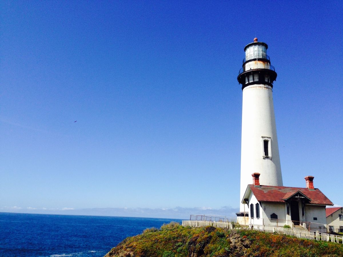 【道中】モントレーまでドライブの途中、ビーチ沿いの灯台のふもとで写真タイム、トイレ休憩があります。5月中旬でしたが、サンフランシスコ市内はもちろんのこと、こちらの地域もかなり肌寒かったです。