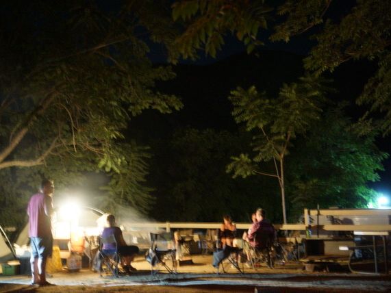 1時間程度の自由時間の後、夕食のタコスを皆で調理。これまでのツアー客が使って洗ってきた調理器具・食器を使うので、潔癖症の人は無理か。味は結構おいしく、量は多い。1時間程度自由時間の後、希望者でキャンプファイヤー。マシュマロを焼いてチョコとビスケットで挟んで食べられる。22時頃には終了。