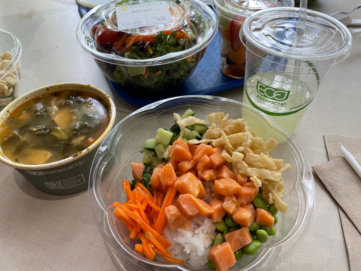 ご飯は期待しない方が良いです。インスタント系の食べ物を持参するのをおすすめしますが、ヨセミテバレーロッジ内にあるフードーコートを利用する場合は、ハンバーガーと寿司ボールの2つのお店がありますが、ハンバーガーの方をおすすめします。