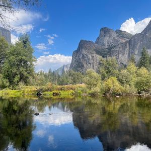 ヨセミテ国立公園観光は2度目でした。最初は多くの人も参加するツアーだったので決ったコースを見るものでしたが、今回はプライベートツアーだったのでガイドさんお薦めの場所へ案内していただき、このような素敵な写真が撮れました。天気などにも左右されるのですが、当日は天気にも恵まれ快適なツアーを楽しむことができました。