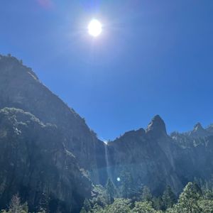 そびえ立つジャイアントセコイアの木々の下を歩くことができ、また水量は少なかったものの、ヨセミテ滝を見ることができ、感動しました。一見の価値はございます。