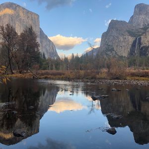 渓谷は壮大で時間がゆっくりと流れます。ヨセミテバレービジターセンター近くのマーセド川は穏やかで憩いの場所です。川沿いでは地元の方は BBQを楽しんだり釣りをしていました。