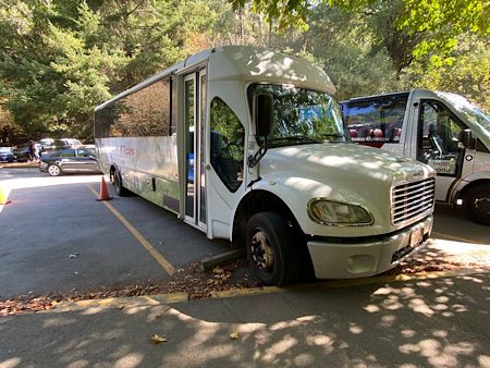 仕事の合間に自然を堪能したいと思い、このツアーを予約した。集合場所はホテルから歩いて10分程度の場所。 前日に一回そこまで行き確認しておいたので、当日は不安になることもなかった。 迎えの車は集合時刻の15分前には来た。 ガイドの英語は、相当砕けていて、通常の英語のポッドキャストでは聞き取れるレベルのヒヤリング力も結構無力だった。 目的地が離れていることもあり、実際自然の中を歩くことができるのは1時間半。 モデルコースのラウンドトリップのトレイルを急ぎ足で辿るのが精いっぱいだった。しかし、サンフランシスコの喧騒からしばし離れ、森の香りを堪能できたのだから良しとしよう。 帰りも、ピックアップ場所に下ろしてくれるものと思っていたら、ツアー会社の前で下ろされた。 「連れ帰ってくれないの?」と聞いたら、別の市内周遊バスに載せてくれたのは、親切だった。 ツアーの乗り物には、検温しますよ、マスク着用と書いてあるものの、略誰もマスクはしていない。私は護身の為に一人マスクを車内ではしていた。