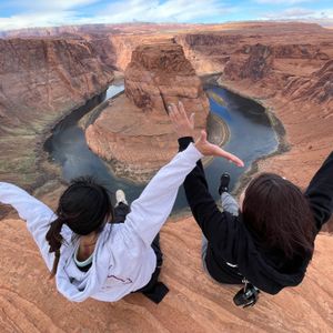 ホースシューベントでは、15分程緩やかな坂道を歩くので、歩きやすい服装と靴での参加をお勧めします。季節によると思いますが、この時期でもとても日差しが強かったです。かなり混雑していましたが、ガイドの方がすぐに空いている写真スポットを見つけてくださるので、的確な指示と判断力でたくさんの写真を撮ることができました。崖のぎりぎりで撮影したい場合は挑戦できますが、高所が苦手な場合はできる範囲で迫力のある写真を撮ってもらうこともできます。