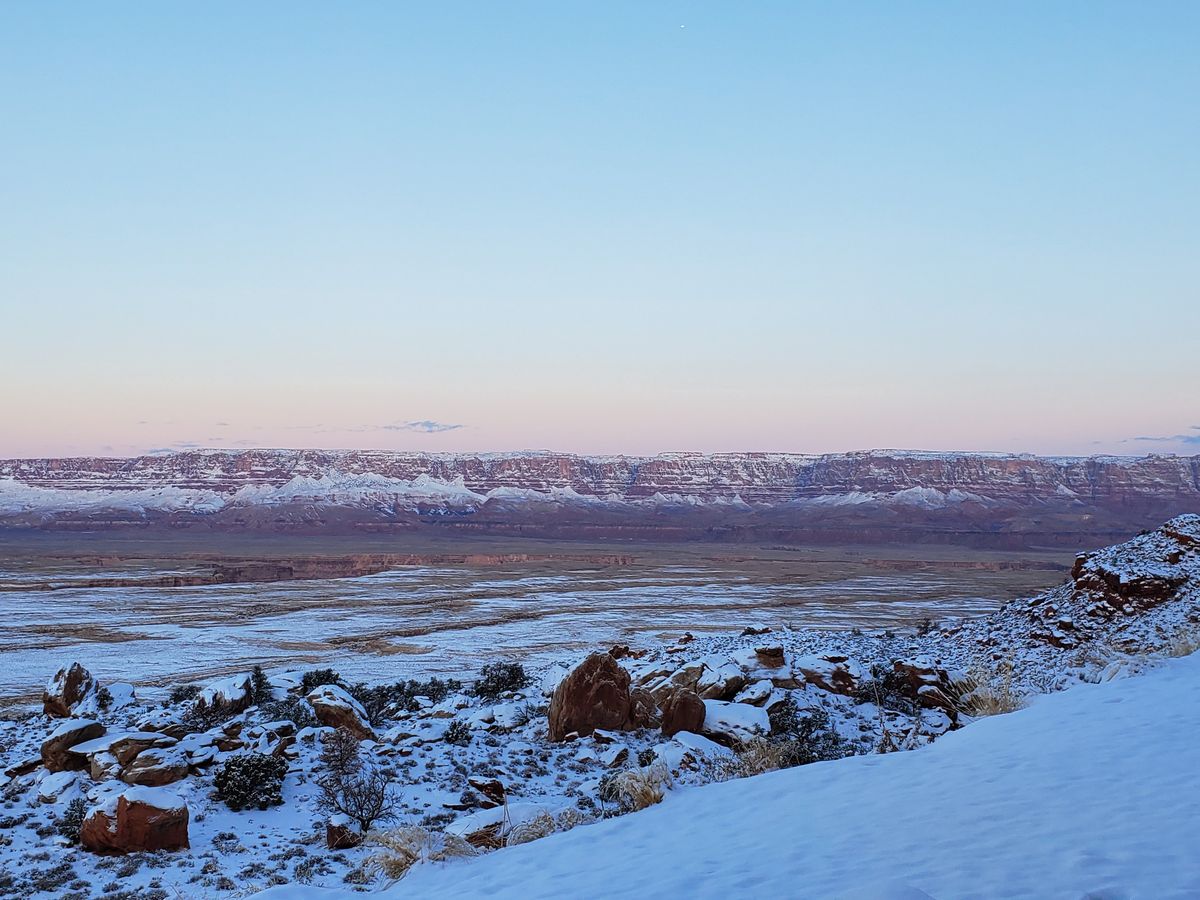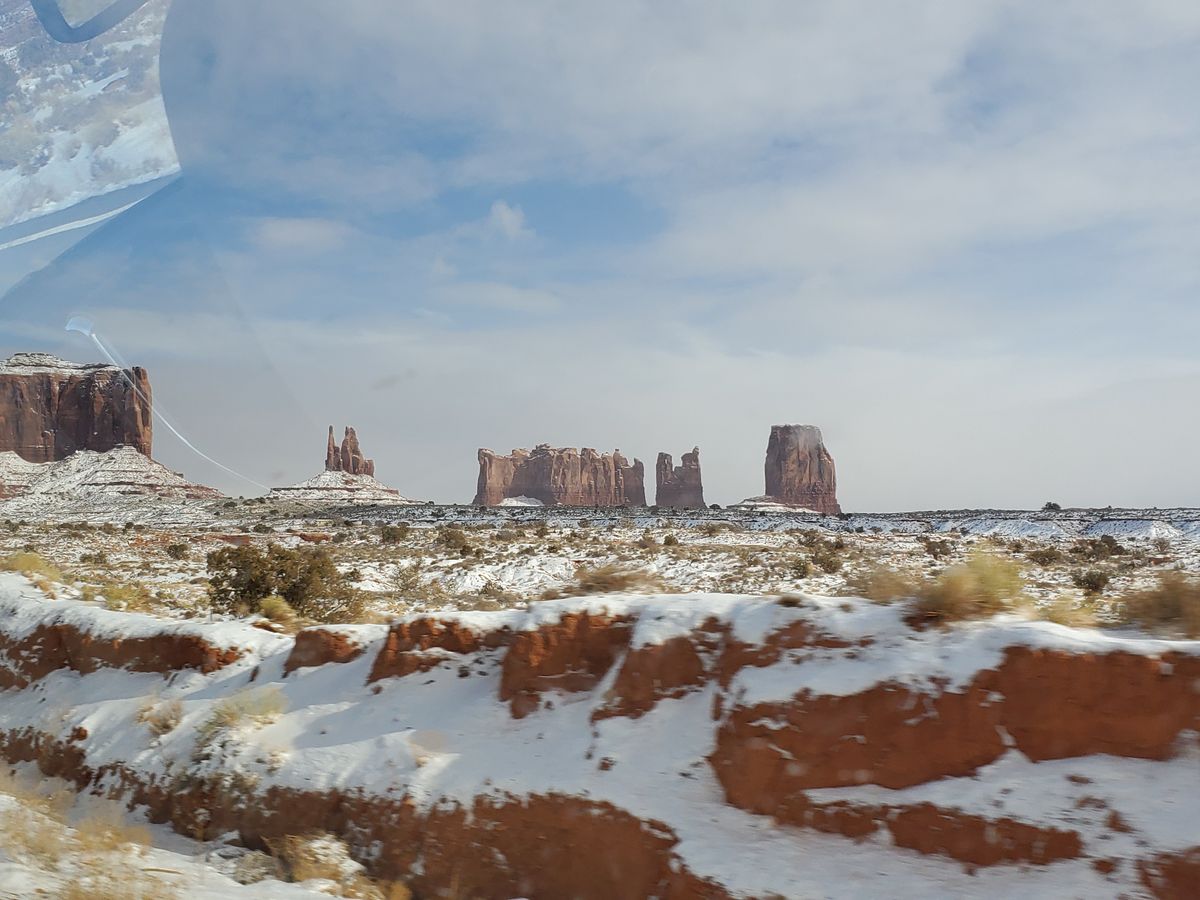 年末、雪。気温マイナス3度。途中積もっているところばかり。写真と比べ物にはならないほど圧倒されたホースシューベント。美しいの一言アンテロープキャニオン。雪化粧のモニュメント・バレー。感動です。