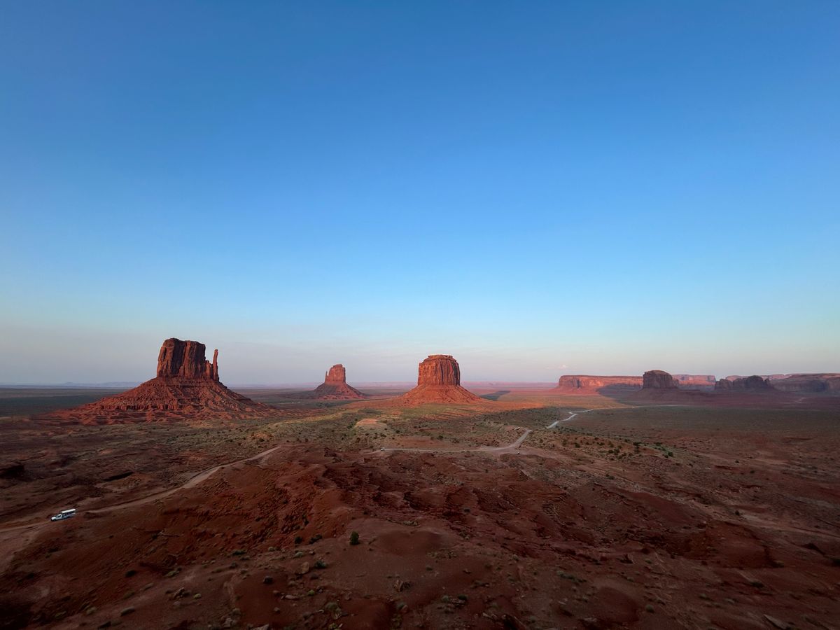 どこに行っても壮大な景色が広がっていて、特にモニュメンドバレーは最高でした。ビューホテルの部屋から見た朝日もすごく感動しました。