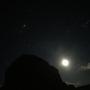 まずはエアポートメサで、爽やかな風が吹く中、満月が昇るの待ちました。大きな月が昇り、やさしい月明かりを浴びながらしばらく満月を眺めていると、いつのまにか風が止んでいました。本当に不思議な感じでした。