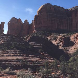 ガイドさんに説明を受けながら麓を歩き、登り口へ。ガイドさんが同行できるのがココまでなので、ひと通り説明を受けて、自分で登ります。カセドラルロックを実際い登り始めると勾配がキツく、下りられるのか心配しましたが、案外、下りる時の方がの方が楽でした。所々で休憩しながら景色を楽しみます。やはり登って良かったです。景色はもちろん素晴らしいですし、うまく表現できませんが、落ち着くというか、癒されます。