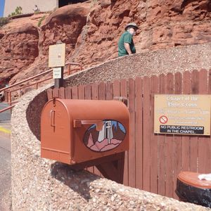 教会の駐車場からトレイルヘッドまでは道一本なので難しくはないのですが(ちなみに徒歩15分くらい)、詳しい道順、カセドラルロックを登るうえでの注意点等いろいろアドバイスを頂けました。