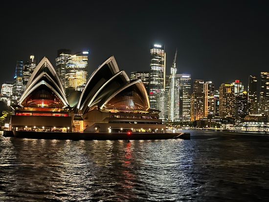 薄暗くなってからの出航でだんだん闇に包まれる中、ワインを頂きながらゆったりと満喫出来ました。 ホールスタッフの皆さんも陽気で楽しくおしゃべり出来ました。食事のあと、デッキで夜風に当たりながらオペラハウス、ハーバーブリッジを眺めてシドニーを楽しみました。