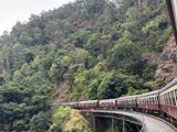 キュランダ鉄道に乗ってキュランダ駅(市街)迄移動。鉄道に乗っている間は雰囲気を楽しめる。途中の下車駅では大滝が見られる。感動する体験になった。