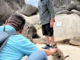 シェーンさんがロックワラビーを呼んでくれるので、エサを手に乗せて食べさせることが出来ます。お腹に子供が入っている子も居ました。