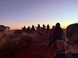 ラクダに乗って1時間半ほど、赤土の丘を登ってくる朝日と照らされるエアーズロックをラクダの上からゆっくりと鑑賞できます。ラクダは馬よりも大きく、歩くスピードがゆっくりで安定感ありました。専用のポシェットを貸してくれ、そこに携帯電話を入れて、ラクダの上から沢山写真を撮ることが出来ました(それ以外のリュックなどは案内所に置いて行くので、貴重品は持ってこない方が良いです)