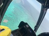 ヘリがふわっと浮き上がった瞬間、目の前に広がったのは、言葉を失うほど美しい海のグラデーション。