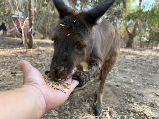 飼育員のお話を聞きながら、カンガルーやコアラに餌をあげたり近づいたりします。