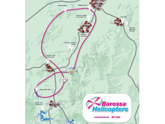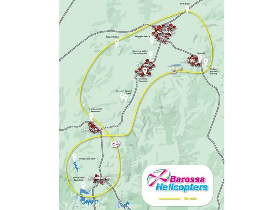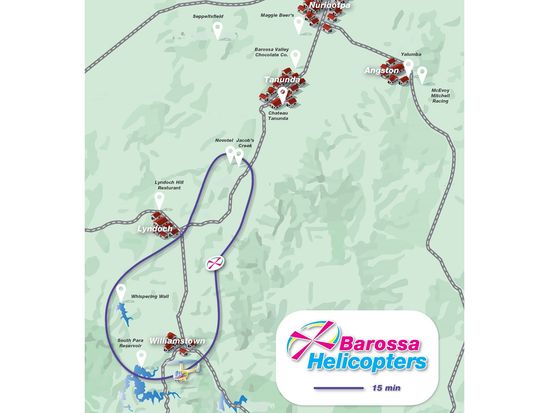 ヘリコプターでリンドック(Lyndoch)にある「1837 Barossa」へお迎えし、ツアーへ出発します。終了後は同宿泊施設にお送りとなります。