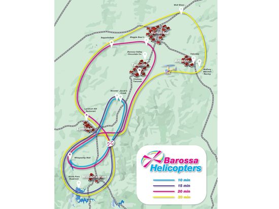 セッペルツフィールド・ワイナリーやマギービール農場、石灰岩の採石場などの眺めがご覧いただけるほか、アンガストンの町上空からは180°広がるバロッサ・バレーの美しい景色もご堪能いただけます。