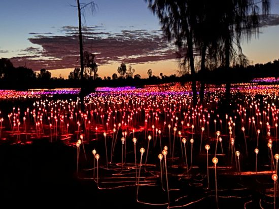 5万球以上の電球による光の草原と迫力あるウルルの光景は圧巻