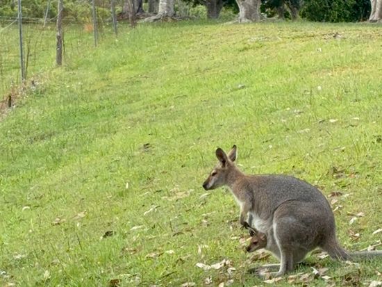 食後にワイナリーを散歩すると子連れのワラビーに遭遇できました!