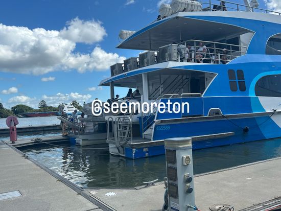 モートン島に向けて出航!190人乗りの大型カタマラン船でクルージングをお楽しみください。
