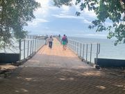 Cairns市内から船で1時間弱の島、グリーンアイランド。 お天気にも恵まれて波は穏やかでした。 船の中で島でできるアクティビティが映像で紹介されて、やりたいものがあれば、係員さんが対応してくださる感じでした。日本人の係員さんも何人かいらっしゃったので安心だと思います。 着いたら、島の森の部分をまわったり、海に行ったりなど自由行動です。 手前のお土産ショップ兼アクティビティの受付場所で、シュノー