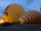 熱気球は膨らませる工程から見る事が出来ました。朝早くから熱気球に乗るため、綺麗な朝焼けの景色で遊覧を楽しめます。