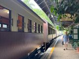 スカイレール乗り場のショップにあるカフェでコーヒーとパンを食べて、自分達のペースでスカイレールに乗り、キュランダを観光。ランチを食べて駅に向かい、駅に止まっている列車の写真を撮ることもできました。列車は、三人グループで窓際から3席でした。憧れのキュランダ鉄道を満喫した2時間でした。