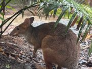 キュランダ村までの鉄道で午後の動物ツアーに参加したのは私たちだけ。他の皆さまはレインフォレステーション行きのツアー参加だったようです。こちらのツアーにはランチが付いていないので要注意。キュランダ村での自由時間中にガイドさんお勧めのホットドッグやミートパイを食べました。その後動物ツアー参加の方々と合流。あいにくの雨でしたがガイドさんが一生懸命盛り上げて下さり楽しい体験となりました。シロアリを食べたり