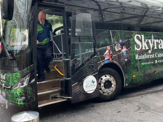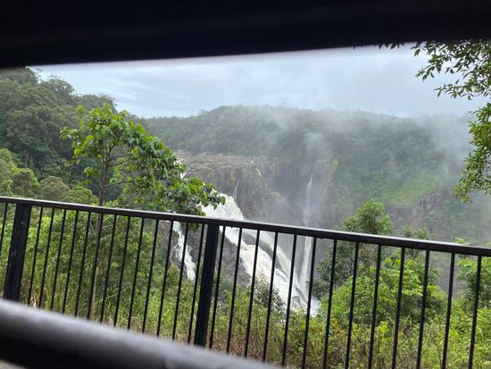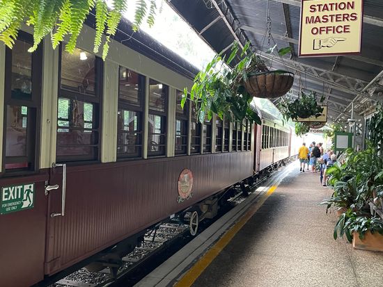 スカイレール乗り場までは、別のホテルのエントランスで待ち合わせして、バスに乗り込み向かいました。スカイレールは風が入ってくるので、とても快適で、途中下車した2ヶ所の景色も素晴らしかったです。あとは、キュランダ村に着いてからですが、雨季ということで気温の高さだけでなく湿度もあり、最初の上り坂で妻が熱中症になってしまい、ダウン。コアラの抱っこ写真を撮る予定が、列車の時間まで4時間ほどダウンした妻と子供