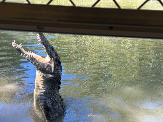 園の名前にもなっているクロコダイルが10頭以上住んでいる池を、ボートでクルーズ。キャプテンが餌を付けた棒を池に入れると、コロコダイルが目の前で大ジャンプ!迫力のクロコダイルはケアンズでもここだけのアドベンチャーです。