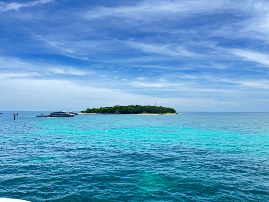 桟橋から島に向かっお巊偎、ラむフガヌドがいるビヌチにおシュノヌケリングをお楜しみください。
