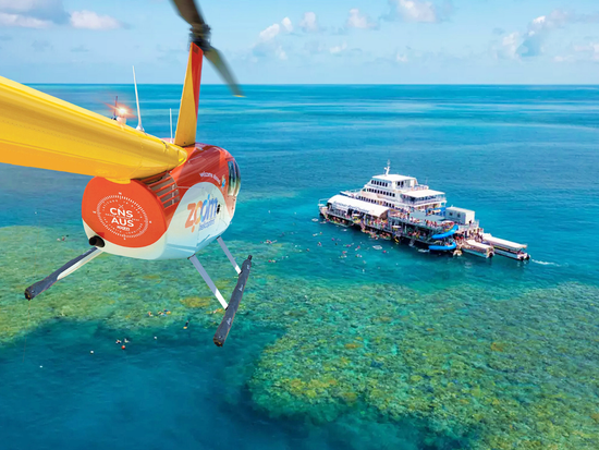 世界遺産グレートバリアリーフに浮かぶサンラバー・ポンツーン(人工浮島)へ。半潜水艇、グラスボトムボート、シュノーケリングでアウターリーフを存分にお楽しみください。10分間遊覧飛行付きプランもご用意!上空からグレートバリアリーフを一望いただけます。オプション申し込みでケアンズ市内もしくはノーザンビーチのホテルへの送迎も可能!