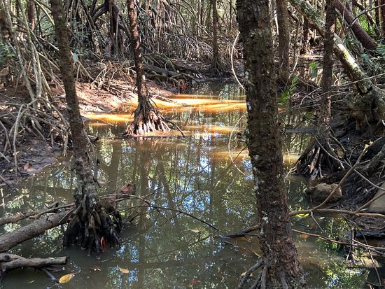 多様な生き物が生息するデインツリー川。リバークルーズでは、野生動物観察や熱帯雨林の美しい景色を見ることができます。イリエワニが生息していることでも有名なので注意深く観察しましょう。運がよければその姿が見れることも。