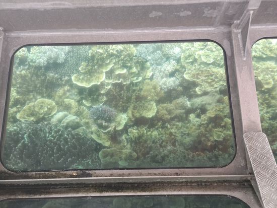 船底から0.5~3m下の珊瑚礁が広がる海中世界を観察いただけます。海洋生物のエキスパートの解説とともにイソギンチャクや色とりどりの熱帯魚をご覧ください。