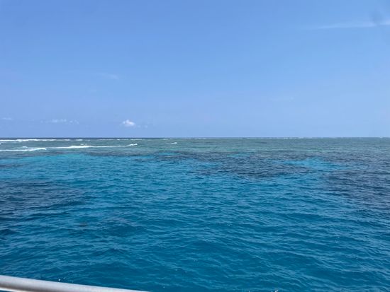 10月のケアンズは晴れが多いとの予想通り、快晴の日が続いていました。グリーンアイランドは初めてでしたが、今回行って良かったです。ベルトラさんで予約して印刷したコピーを当日リーフターミナルのカウンターに出してチケットをもらいます。島への高速船は、思ったより快適で晴れていれば外のデッキ席が景色が良く楽しいです。2階席はスピード感がすごく感じられ、帽子などが飛ばないように体が持って行かれないようにみんなしがみついているのが笑えました。
