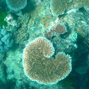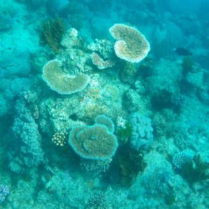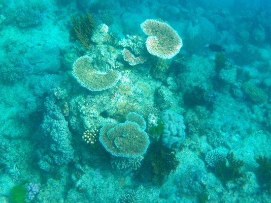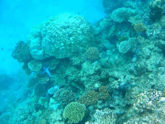 ポイントに到着しましたが、お客さんが多かったため、私達のグループは他の外国人グループが体験ダイブを始めている時にはシュノーケルをしていることになりました。船の周りはかなり濁っていて、正直(こんなものなの?)とがっかりしましたが、外国人の女性スタッフの方の浮き輪につかまり、珊瑚礁の方へと連れて行ってもらうと、さすが!と驚くほどの美しい珊瑚が広がりました。