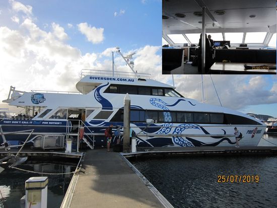 帰港のための移動の際に、YUYAさんから何度も「手違い、申し訳ありませんでした」と謝罪を受けましたが、このことだったと思います。こちらこそ息子の頭痛で迷惑を掛けたので、クレームをつける気などまったくありませんでしたが、今体験談を書いていると、もう少しきちんとされた方がよかったと感じます。客は総勢で25~30名程度だったでしょうか。それぞれに対応しなければならないので大変だと思いますが、皆さん、グレートバリアリーフのダイビングを胸ワクで楽しみにしているのですから。