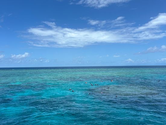 船に乗って90分、360度海に囲まれた絶景のポンツーンはグリーン島やフィッツロイ島などに比べて段違いで魚や珊瑚がいっぱい。海に入った瞬間にとても大きなナポレオンフィッシュに会えました…!タイミングが悪かったのかカメには会えず残念。それでも、これぞグレートバリアリーフ!な光景が目の前に広がり感動しっぱなし。あっという間の滞在時間でした。