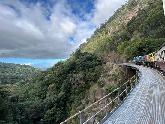 行きは、床がガラス面のダイヤモンドビュー・ゴンドラ、帰りはキュランダ鉄道でした。鉄道のゴールドクラスは、人気が集中しているのか、残念ながら予約できませんでした。
