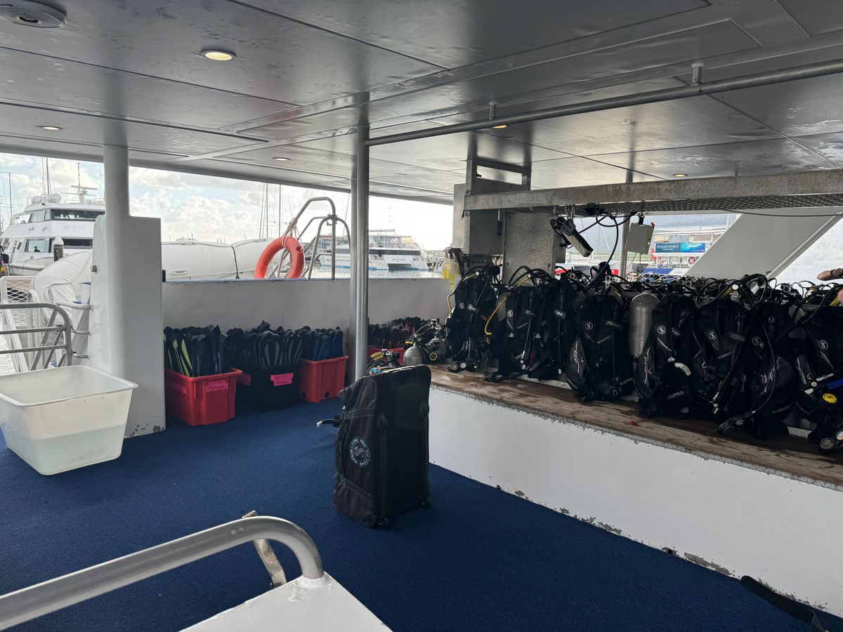 ただ、自分たちは酔い止めを飲んだので平気でしたが、船酔いしてる方が非常に多かったので対策が必要です。また、室内は冷房が強く非常に寒かったので外の席にいましたが、船内のモニターで流してらしいダイビング中に撮影してもらった写真は観ることができず残念でした。