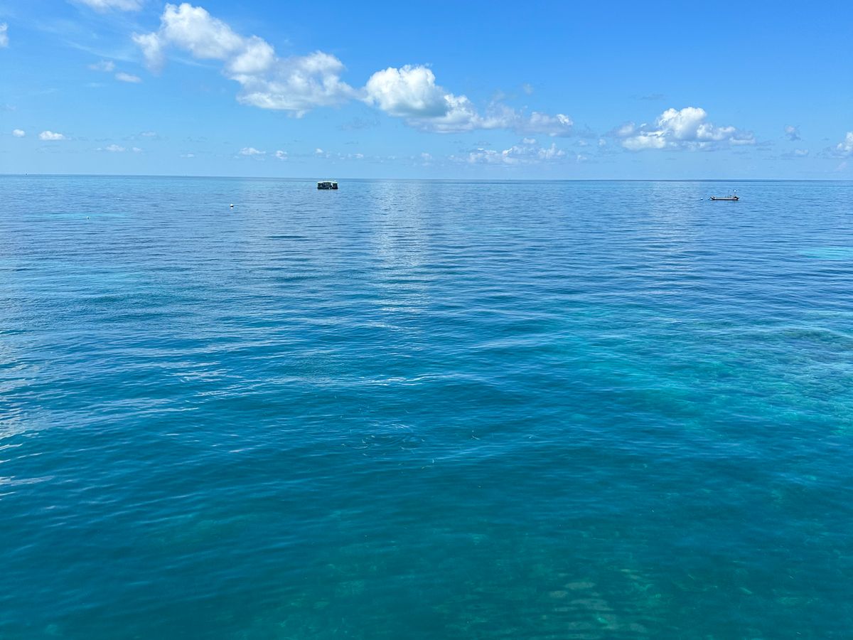 アウターリーフ:竜宮城みたい。ブイが浮いていて、泳ぎ回れるエリアが大体決まっており、そこを超えると監視しているライフセイバーの人が笛を吹いて離れすぎないように注意してくれる。エリアは広く、2時間ちょっと泳ぎ回るには十分。深くて大きな魚がいるエリアから、色とりどりのサンゴ礁やテーブルサンゴなどがある浅いエリア、その境目のサンゴ礁の崖みたいになっている場所など、地形含めて本当にきれい。当方、宮古島の八重干瀬でもシュノーケリング経験ありますが、カラフルさや種類が一番きれいだったところを2時間好きに泳ぎ回れる感じ。ナポレオンフィッシュは見られませんでしたが、ウミガメが来ていて、しばらく一緒に泳ぎました。監視員スタッフに日本人が1名いて、おすすめポイントなどいろいろ聞けました。