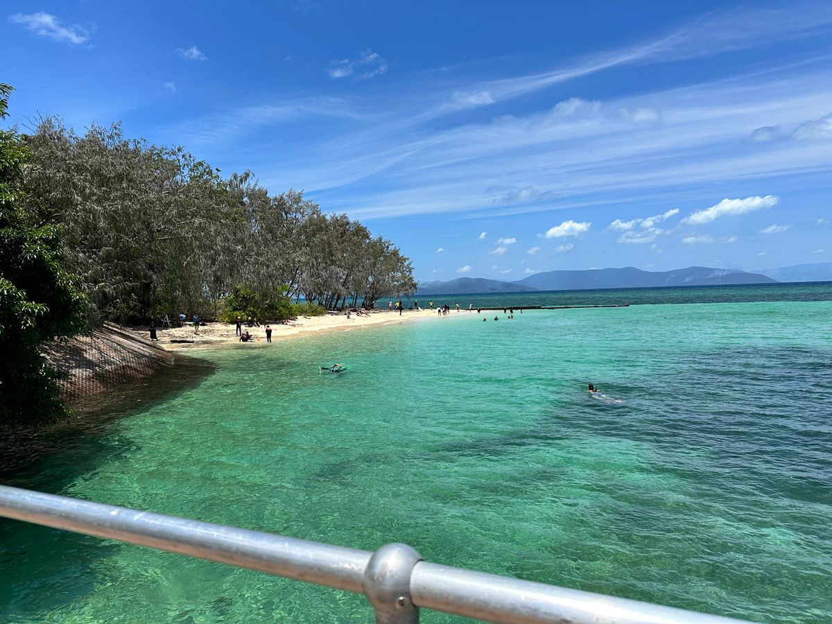 雨季の時期だったため行きはスコールのような雨が降りました。シュノーケルを予約していたので心配していましたが島に着くとびっくりするような晴天!オーストラリアの天気は読めません(笑)暑いくらいの日差しの中きれいな珊瑚礁を見ることが出来ました。シートを広げて寝転ぶだけでも非日常を感じれて最高でした!時期的に人も少なくてよかったです!