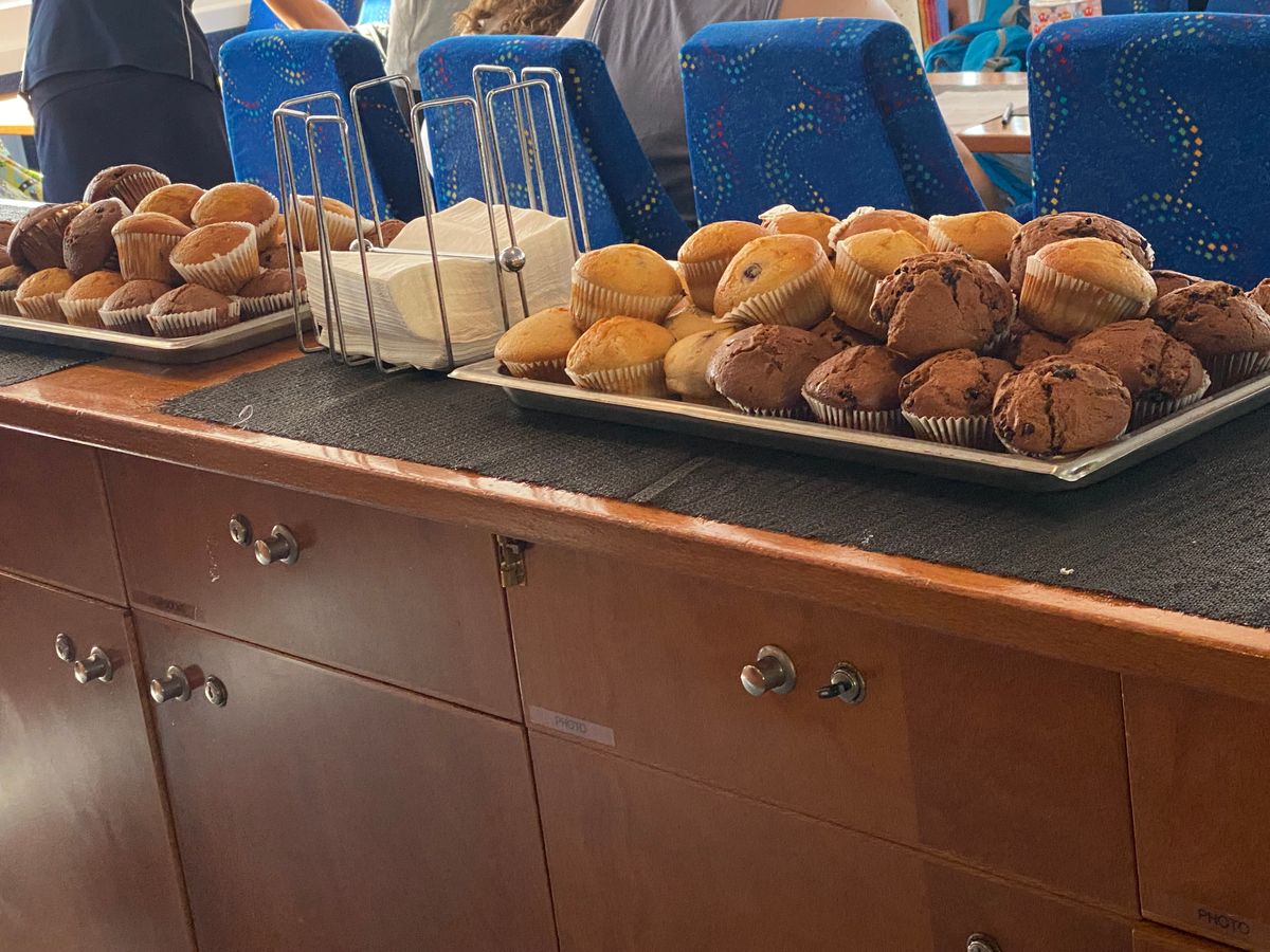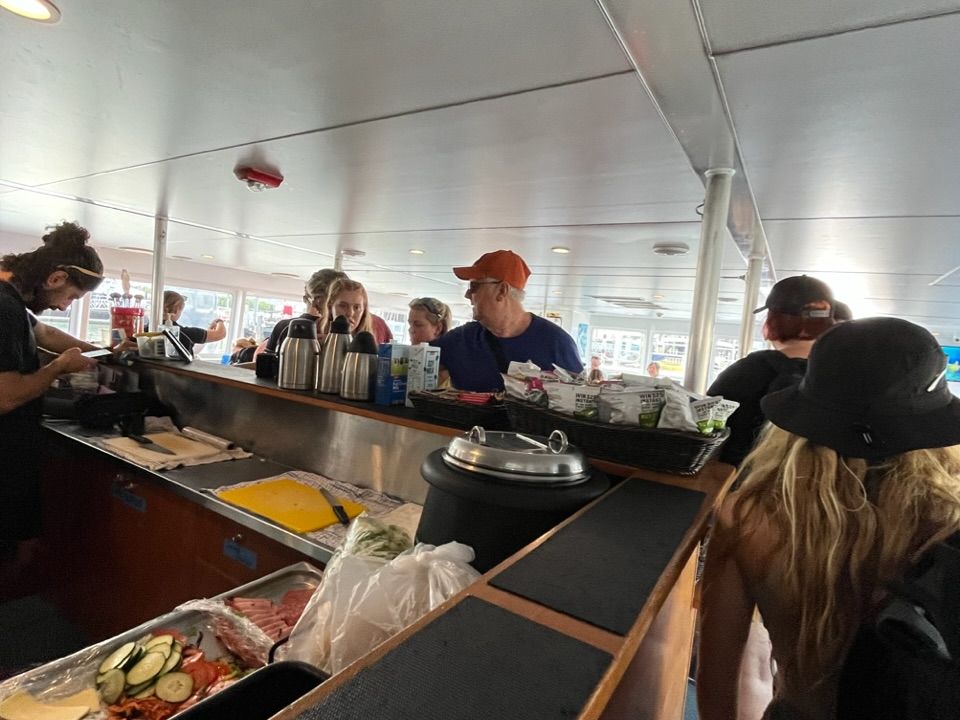 ランチはバイキング形式なので量の心配もありません。船の移動では焼き菓子やクラッカーなどがもらえました。船内売店もあります。