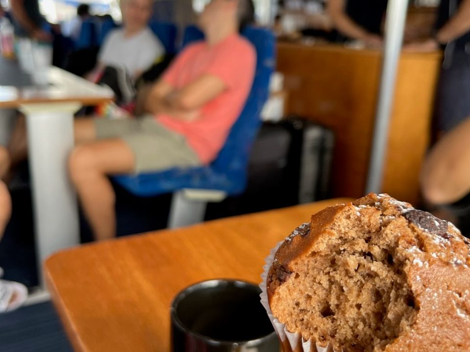 行き帰りの船では温かいコーヒー紅茶やお菓子、冷たい水が用意されていました。