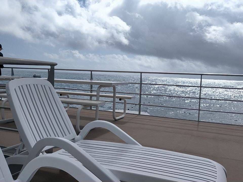 往復の海はかなり揺れたが、外の椅子に座って、何とかやり過ごすことができた。