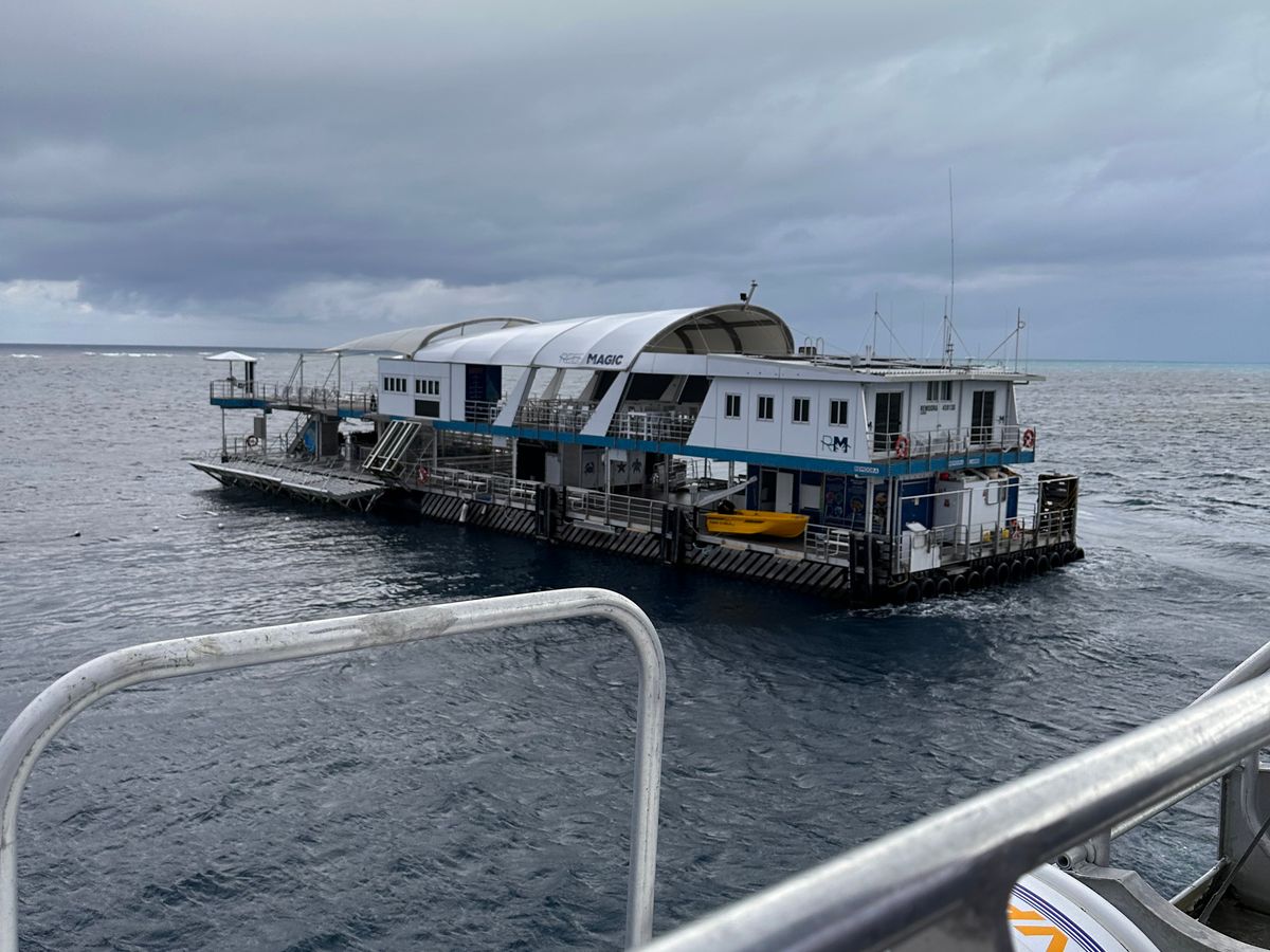ケアンズのリーフフリートターミナルからポンツーンまで1時間半以上?かかり、風が強かったせいもあってかすごく揺れました。酔い止めをいただけましたが、私以外も結構たくさんの方が酔ってらっしゃるみたいでした。着いてから、ポンツーン自体はさほど揺れることもなく休憩してから楽しめました。水着を持ってませんでしたがスイムスーツを借りられたのでシュノーケル楽しみました。グラスボートなども追加料金なしで乗れたのは魅力的でした。