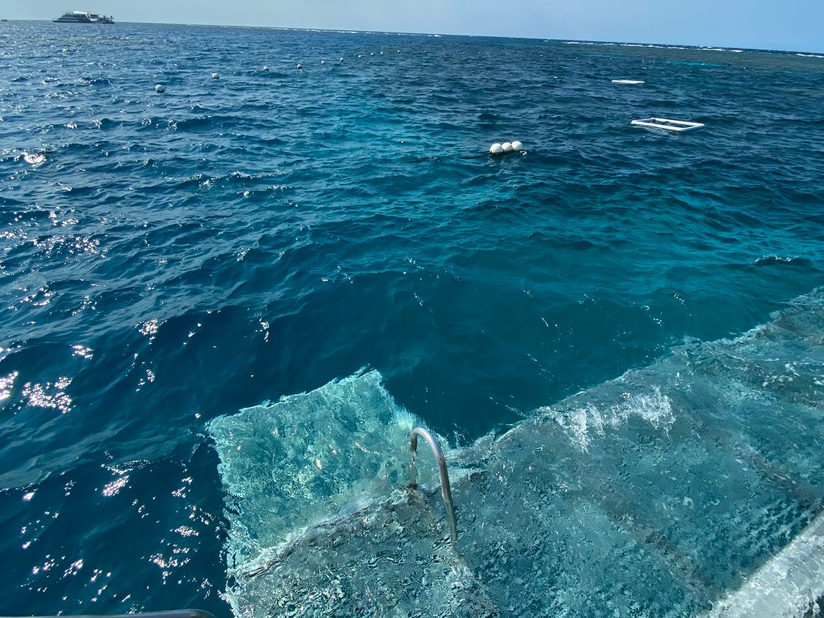 ついてからすぐ半潜水艦にのりこみ、ポンツーンの周りがどんな海なのかを見回ることができました。